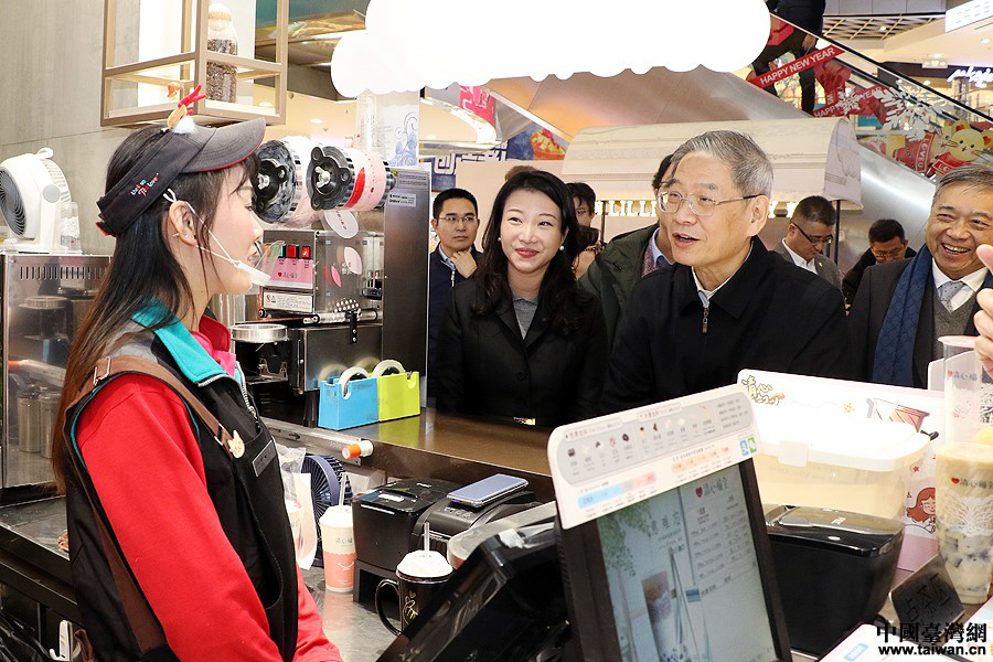 12月30日,海協(xié)會會長張志軍在上海日月光中心,與在此經(jīng)營店鋪的青年親切交流。(中國臺灣網(wǎng) 何建峰 攝)