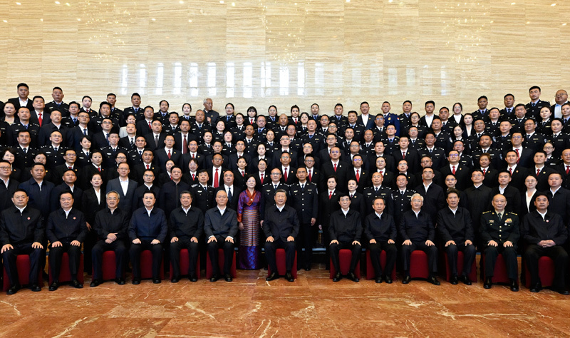 8月20日下午,中共中央總書記、國家主席、中央軍委主席習(xí)近平在拉薩親切接見西藏自治區(qū)政法干警代表,并同大家合影留念。新華社記者 殷博古 攝